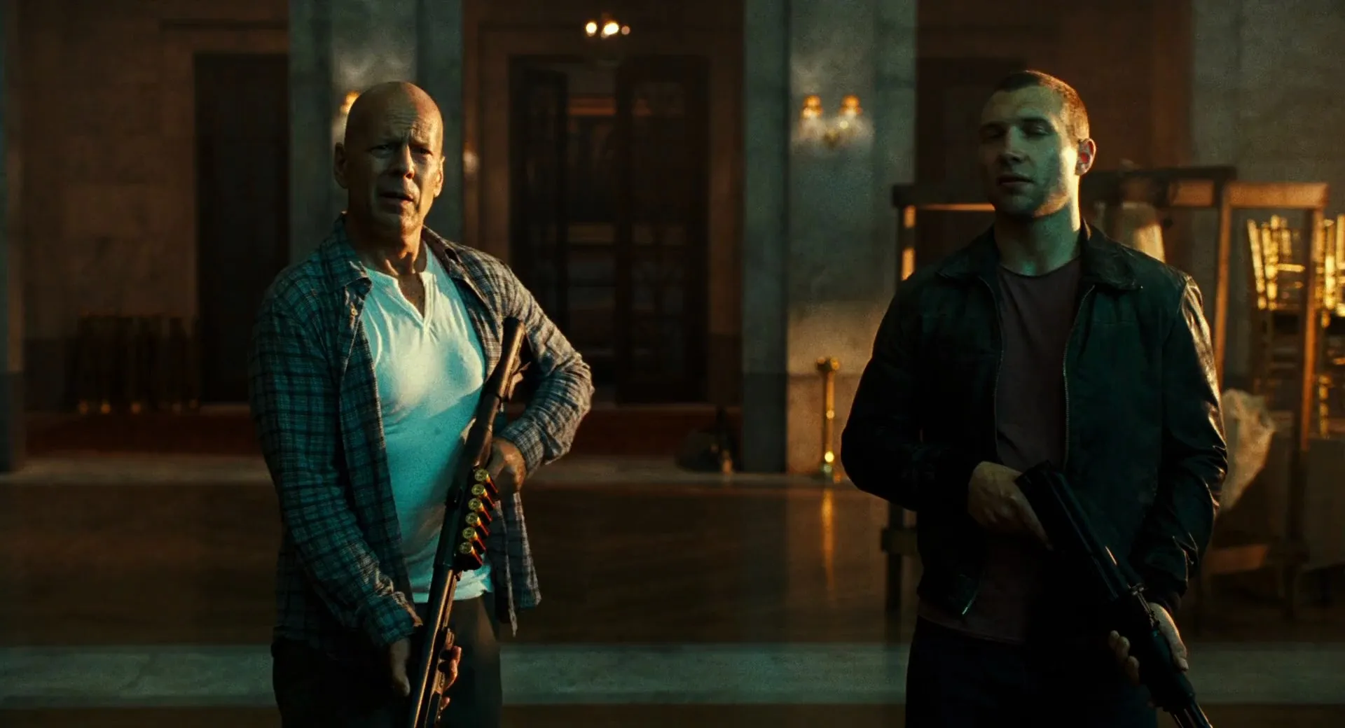 Actors: Bruce Willis as John McClane, Jai Courtney as Jack McClane, Sebastian Koch as Komarov, Mary Elizabeth Winstead as Lucy McClane, Yuliya Snigir as Irina, Cole Hauser as Collins, Radivoje Bukvić as Alik, Amaury Nolasco as Murphy, Sergey Kolesnikov as Chagarin, Roman Luknár as Anton, Zolee Ganxsta as Russian Mafia Member, Péter Takátsy as Prosecutor, Pasha D. Lychnikoff as Taxi Driver, Megalyn Echikunwoke as Reporter, Melissa Tang as Lucas, Attila Árpa as Russian Mafia Member, Norbert Növényi as Russian Mafia Member, Martin Hindy as Mako, Rico Simonini as Colonel, Aldis Hodge as Foxy, April Grace as , Anne Vyalitsyna as (uncredited)