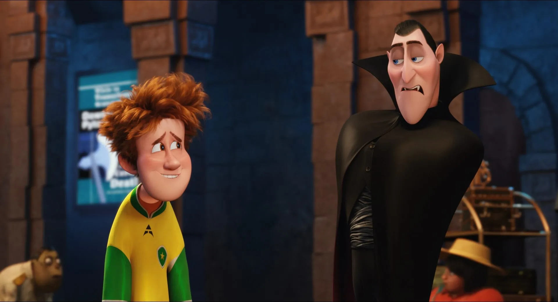 Actors: Adam Sandler as Dracula (voice), Andy Samberg as Johnny Loughran (voice), Selena Gomez as Mavis Dracula (voice), Kevin James as Frankenstein (voice), Steve Buscemi as Wayne (voice), David Spade as Griffin (voice), Keegan-Michael Key as Murray (voice), Asher Blinkoff as Dennis (voice), Fran Drescher as Eunice (voice), Molly Shannon as Wanda (voice), Megan Mullally as Linda (voice), Nick Offerman as Mike (voice), Dana Carvey as Dana (voice), Rob Riggle as Bela (voice), Mel Brooks as Vlad (voice), Jonny Solomon as Blobby (voice), Chris Kattan as Kakie (voice), Sadie Sandler as Winnie (voice), Sunny Sandler as Baby Dennis (voice), Jon Lovitz as The Phantom of the Opera (voice), Robert Smigel as Marty (voice), Ava Acres as Additional Voices (voice), Cole Sand as Additional Voices (voice), Rose Abdoo as Ticket Agent (voice), Luenell as Shrunken Heads (voice), Melissa Sturm as Jogger #1 / Tourist Passenger / Caren (voice), Paul Brittain as Pandragora (voice), Chris Parnell as Fly (voice), Allen Covert as Candle Cake Monster (voice), Stephen Apostolina as Additional Voices (voice), Brian T. Delaney as Additional Voices (voice), Aaron LaPlante as Additional Voices (voice), Steve Blum as Additional Voices (voice), Melendy Britt as Additional Voices (voice), David Cowgill as Additional Voices (voice), Jessica Gee-George as Additional Voices (voice), Grant George as Additional Voices (voice), Nicholas Guest as Additional Voices (voice), Todd Haberkorn as Additional Voices (voice), Jess Harnell as Additional Voices (voice), Bridget Hoffman as Additional Voices (voice), Lex Lang as Additional Voices (voice), Mona Marshall as Additional Voices (voice), Joseph Sanfelippo as Additional Voices (voice), Kirk Thornton as Additional Voices (voice), Matthew Wolf as Additional Voices (voice), Eva Bella as Additional Voices (voice), Jaeden Bettencourt as Additional Voices (voice), Mia Sinclair Jenness as Additional Voices (voice), Logan Kishi as Additional Voices (voice), Megan Richie as Additional Voices (voice), Andre Robinson as Additional Voices (voice), Carter Sand as Additional Voices (voice), Gunnar Sizemore as Additional Voices (voice), Fred Tatasciore as Additional Voices (voice), Kari Wahlgren as Additional Voices (voice), Audrey Wasilewski as Additional Voices (voice), Debra Wilson as Additional Voices (voice), Jim Wise as Additional Voices (voice), Michael-Leon Wooley as Additional Voices (voice), Lynnanne Zager as Additional Voices (voice), Nick Swardson as Kelsey (voice), Jared Sandler as Tourist Driver (voice), Jonathan Loughran as Cop (voice) (uncredited)